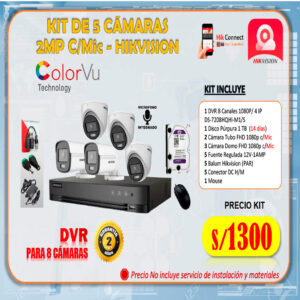KIT DE 5 CÁMARAS HIKVISION 2K 5MP CON MICRÓFONO INTEGRADO – COLORVU